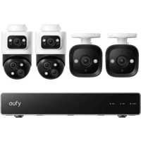 Beveilig je woning of werkplek dag en nacht met de Eufy PoE Security System + NVR + S4 2-Pack + E40 2-Pack. Omdat deze IP camera’s met Power over Ethernet (PoE) werken, krijgen ze internet en stroom via één kabel. Zo hebben ze altijd stroom en een stabiele internetverbinding. De ethernetkabel sluit je aan op de meegeleverde NVR. Hier bewaar je 2 TB aan beelden. Wil je nog meer beelden opslaan en later terugkijken? Dan breid je de recorder uit met een extra harde schijf van maximaal 16 TB. Dankzij de goede internetverbinding en de grote opslagruimte is deze set goed geschikt voor de beveiliging van bijvoorbeeld een kantoor of loods. Via de Eufy app op je smartphone kijk je live mee met de beelden. De S4 camera’s draaien 360 graden rond, waardoor je minder dode hoeken hebt.