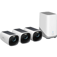 Dit Eufycam 3 3-Pack bevat 3 camera’s waarmee je verschillende plekken binnen- of buitenshuis bewaakt. Deze koppel je aan de Homebase 3. De voordelen ten opzichte van andere Eufy camera’s is dat de EufyCam 3 in 4K resolutie opneemt. Daarnaast heeft hij een zonnepaneeltje, waardoor je hem minder vaak oplaadt. Ook heeft de Eufycam 3 gezichtsherkenning. Zo gaat het alarm niet af bij bekende gezichten. Dit kan hij omdat de HomeBase 3 kunstmatige intelligentie ondersteunt. Dit gebeurt dus lokaal, en niet op de Eufy servers. De Eufycam heeft ook ’s nachts kleurenbeeld tot 8 meter.