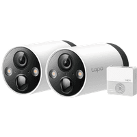 In dit IP camera pakket van TP-Link vind je 2 Tapo C420S2 camera’s. Met deze camera’s houd je gemakkelijk 2 binnen- of buitenruimtes in de gaten via de app. De camera’s hebben 2K beeldkwaliteit waardoor je ook bij inzoomen relatief scherp beeld behoudt. Ook `s nachts houd je alles in de gaten dankzij de nachtvisie. De accu van deze camera’s gaat 180 dagen mee met zo’n 10 filmactiviteiten per dag. Instellingen, temperatuur en gebruik beïnvloeden de batterijduur. De slimme camera herkent mensen, dieren en auto’s. Zo gaat je alarm bijvoorbeeld niet af van een vogel die voorbij vliegt. Het alarm werkt met geluid, en een lichtsignaal. Je verbindt de camera via wifi, en beelden bewaar je op een micro SD kaart die je in de meegeleverde bridge stopt. Zo bewaar je de beelden van beide camera’s op één plek.